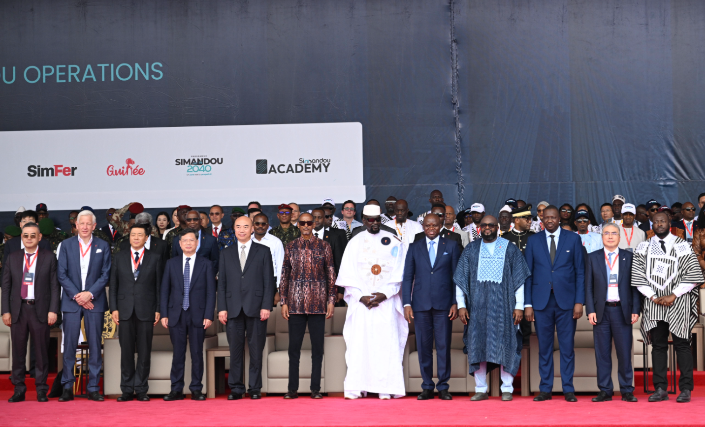 本网讯 几内亚时间11月11日,西芒杜铁矿项目投产启动仪式在几内亚马瑞巴亚港举行。几内亚总统马马迪·敦布亚,习近平主席特别代表、国务院副总理刘国中,卢旺达总统卡加梅,加蓬总统恩圭马出席投产仪式。av视频 总经理王石磊与力拓集团、中国宝武、赢联盟等项目相关方出席活动。