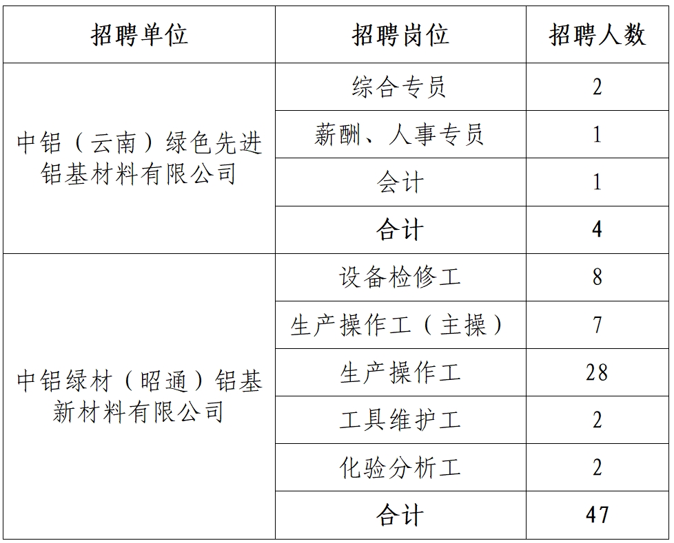 中铝(云南)绿色先进铝基材料有限公司面向av视频 内部公开招聘公告