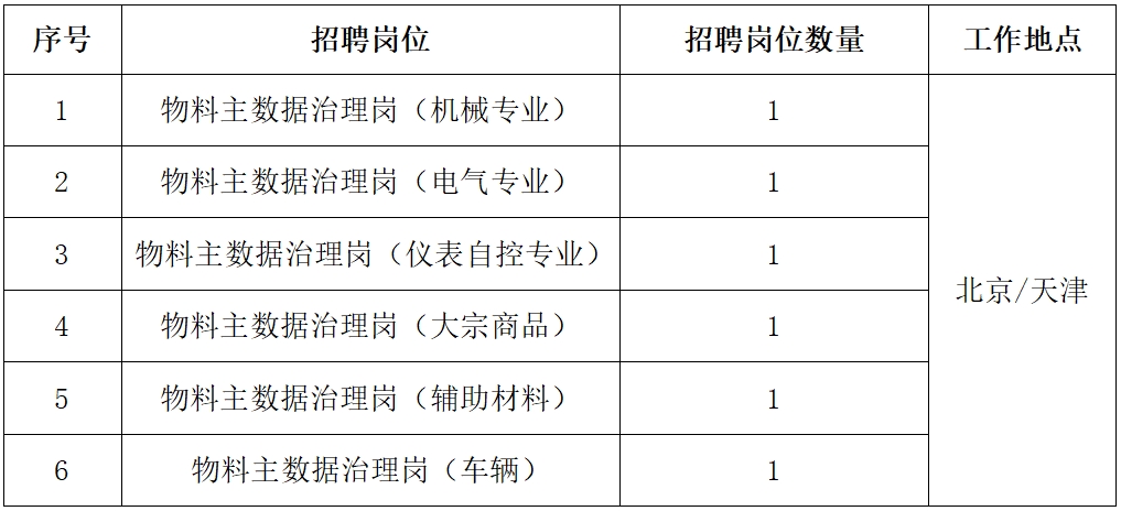 详见《中铝物资有限公司招聘岗位一览表》(附件1)。